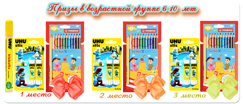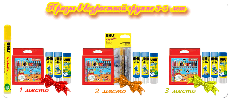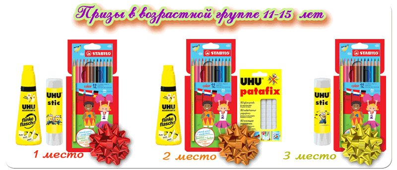 Победители, занявшие призовые места в каждой номинации, получают дипломы и наборы клеев TM UHU.