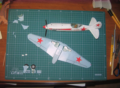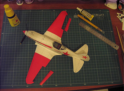 Эта модель произвела на меня огромное впечатление, такого качества, прорисовки и детализации я в жизни не видел. Хотя я имел некоторое представление о моделях. В детстве, как и большинство увлеченных мальчиков, я клеил модели из пластика, но они просто не могли сравниться с этой. С небольшого расстояния можно было вообще подумать, что она вылита из металла. Находясь под впечатлением, я вспомнил о том, что у меня дома лежит один журнал с моделью. И мне сразу захотелось попробовать как такое возможно. Из нескольких листов собрать целый самолёт, не просто какую-нибудь бумажку с крыльями, а модель высочайшей копийности. Купив всё необходимое: ножи, клеи, картон, коврик для резки. Я принялся за работу. По началу, открыв журнал, меня охватила странное чувство, что это просто не реально, как можно вырезать такие маленькие детали, как их склеивать между собой.